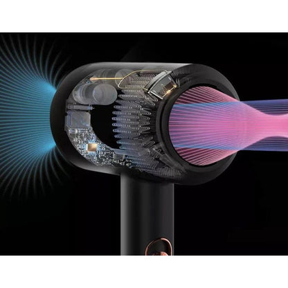 Sa légèreté et sa facilité d'utilisation en font un compagnon idéal, que ce soit à la maison ou en voyage. Profitez d'un séchage rapide et professionnel tout en ajoutant une touche de glamour à votre routine de beauté avec notre séchoir à cheveux noir et rose gold.