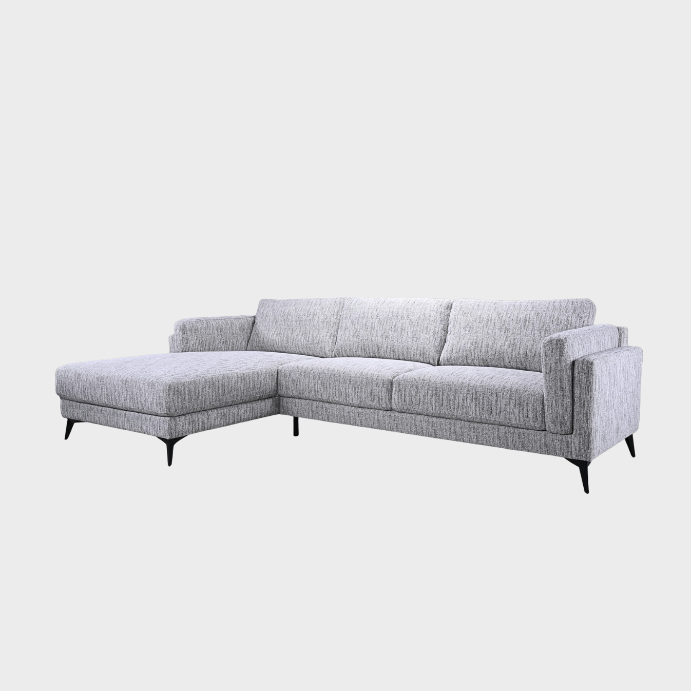 Ce sofa sectionnel au style contemporain impressionne par ses lignes épurées et son design modulaire élégant. Les pattes en métal noir ajoutent une touche de sophistication moderne tout en offrant une stabilité robuste. Parfait pour un espace moderne, il allie confort et esthétique pour une ambiance chic et fonctionnelle.