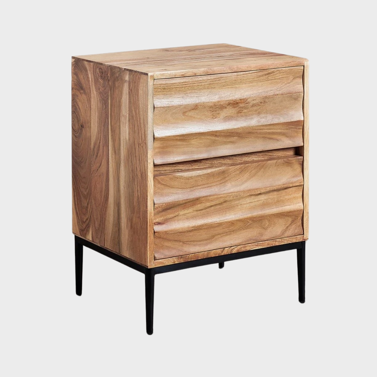 Chaque pièce étant fabriquée à partir de bois naturel, de légères variations de teinte et de veinage rendent chaque table de chevet unique, pour un mobilier à la fois durable et authentique.
