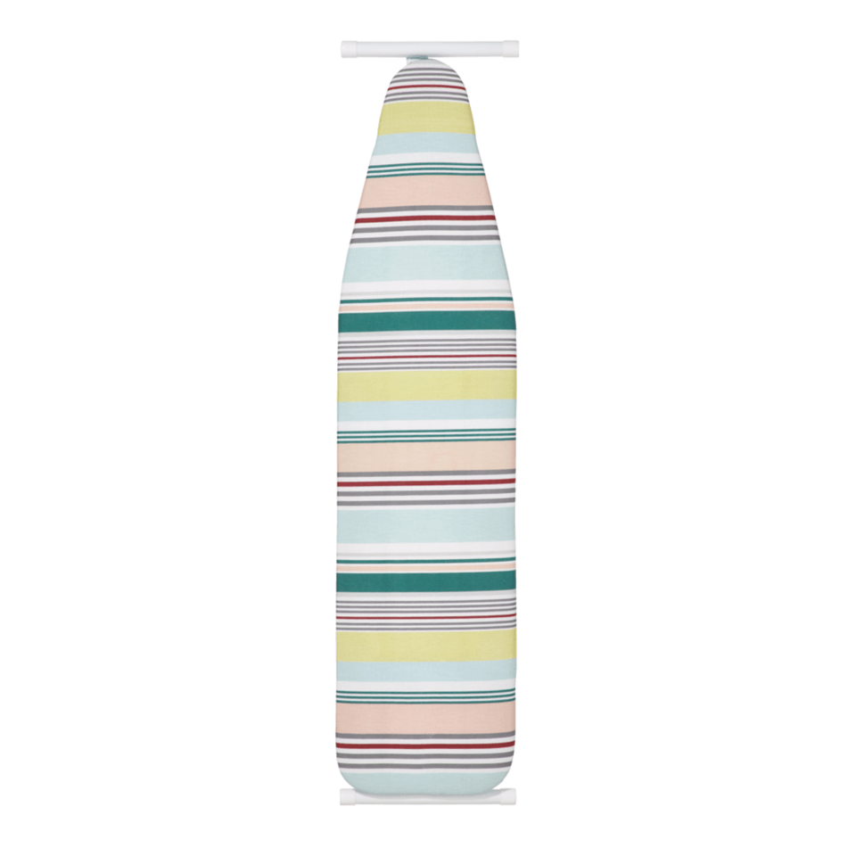 The T-legged ironing board provides a large surface area so you can iron all your clothes easily. It has a cotton cover for added convenience and safety for your clothes. The cover also features an attractive print for added style. This ironing board is fully collapsible, so it's easy to store behind a door, in a closet, or other compact locations when not in use. When you're done, simply fold it up and store it. This size A ironing board can be paired with other items of the same size to complete your collection.
